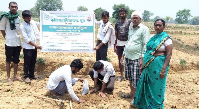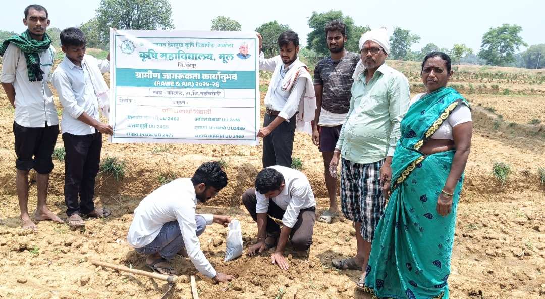 डॉ. पंजाबराव देशमुख कृषि विश्वविद्यालय, अकोला के अंतर्गत कृषि महाविद्यालय, मुल के विद्यार्थियों ने ग्रामीण जागरूकता कार्य अनुभव कार्यक्रम के अंतर्गत कोटगल में किसानों को मृदा परीक्षण के लाभ, मृदा परीक्षण की उचित विधि तथा इससे किसानों को होने वाले लाभ के बारे में जानकारी दी।